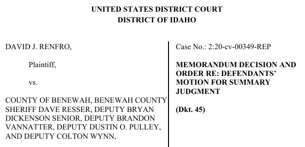 Court Case: https://casetext.com/case/renfro-v-cnty-of-benewah